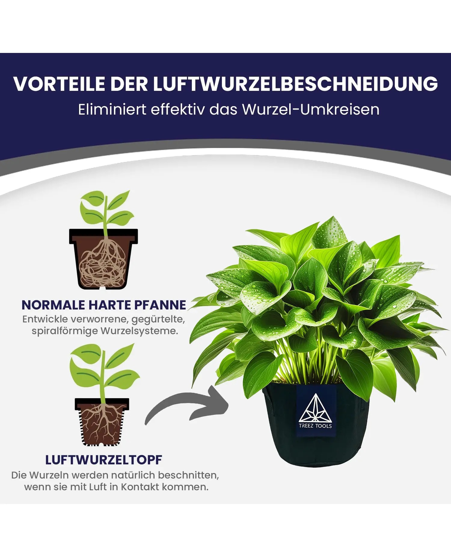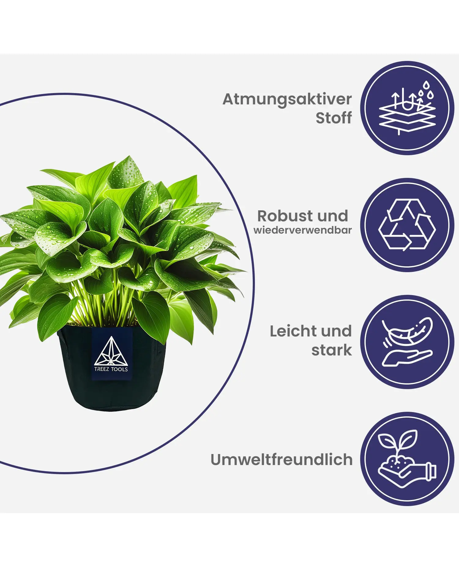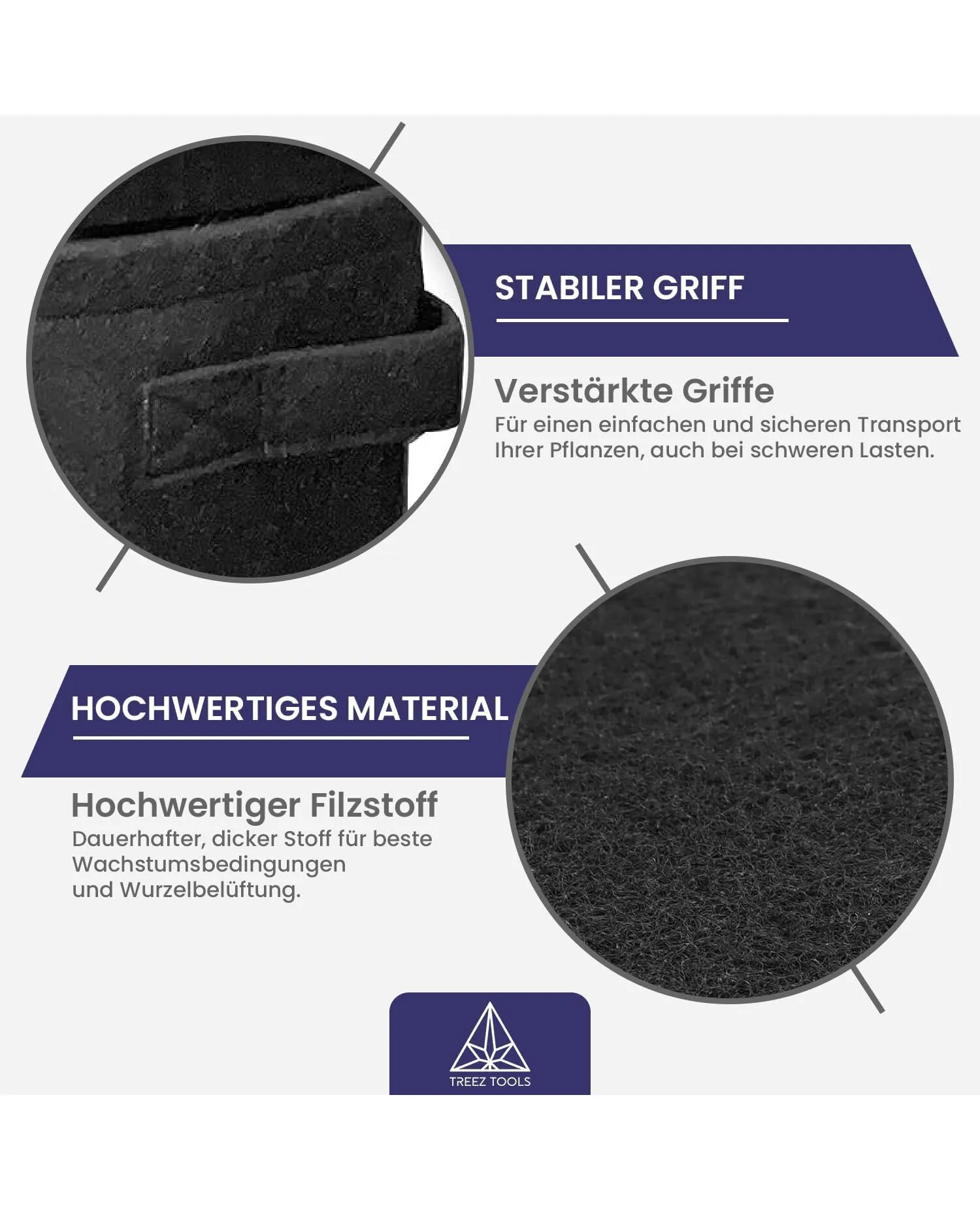 - Merkmale: Die im Set enthaltenen Grow Töpfe sind aus hochwertigem, dickem Gewebe gefertigt, das eine hervorragende Wurzelbelüftung ermöglicht und gleichzeitig Staunässe verhindert. Die Töpfe eignen sich ideal für den Anbau von Kräutern, Blumen und kleinem Gemüse. Dank der verstärkten Griffe sind sie leicht zu transportieren und besonders langlebig.