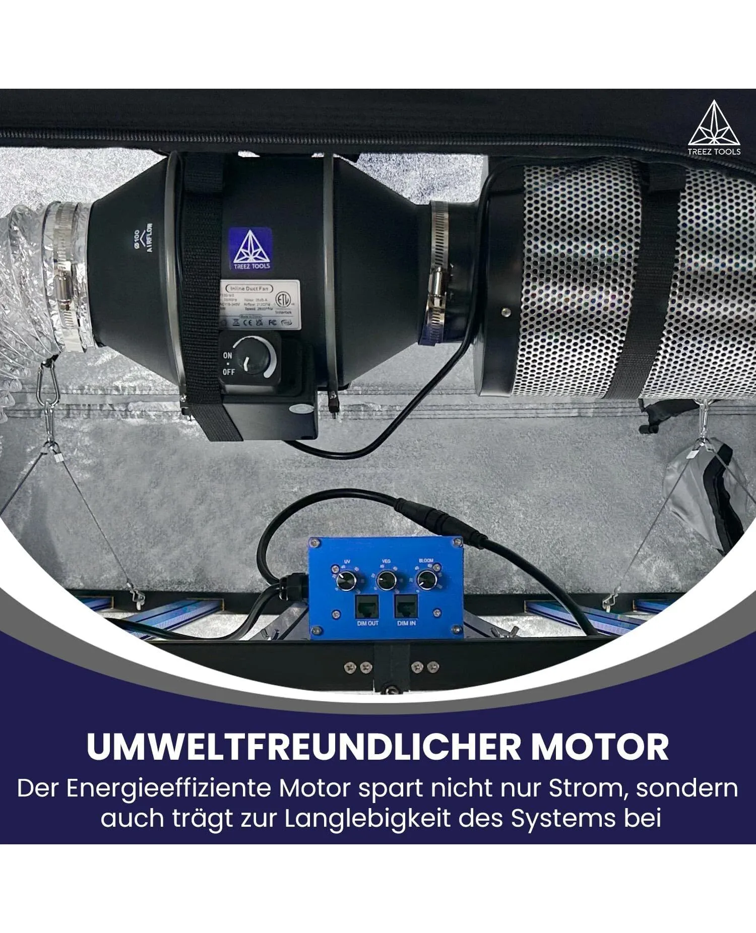 - Merkmale: Das Belüftungssystem ist mit einem flüsterleisen 100mm Inlinerohrventilator ausgestattet, der effizient arbeitet, ohne störende Geräusche zu verursachen. Der integrierte Aktivkohlefilter aus hochwertiger australischer Aktivkohle entfernt Gerüche und sorgt für eine frische, saubere Luft. Das System lässt sich einfach installieren und trägt dazu bei, ein gesundes Klima in Deiner Growbox zu schaffen.