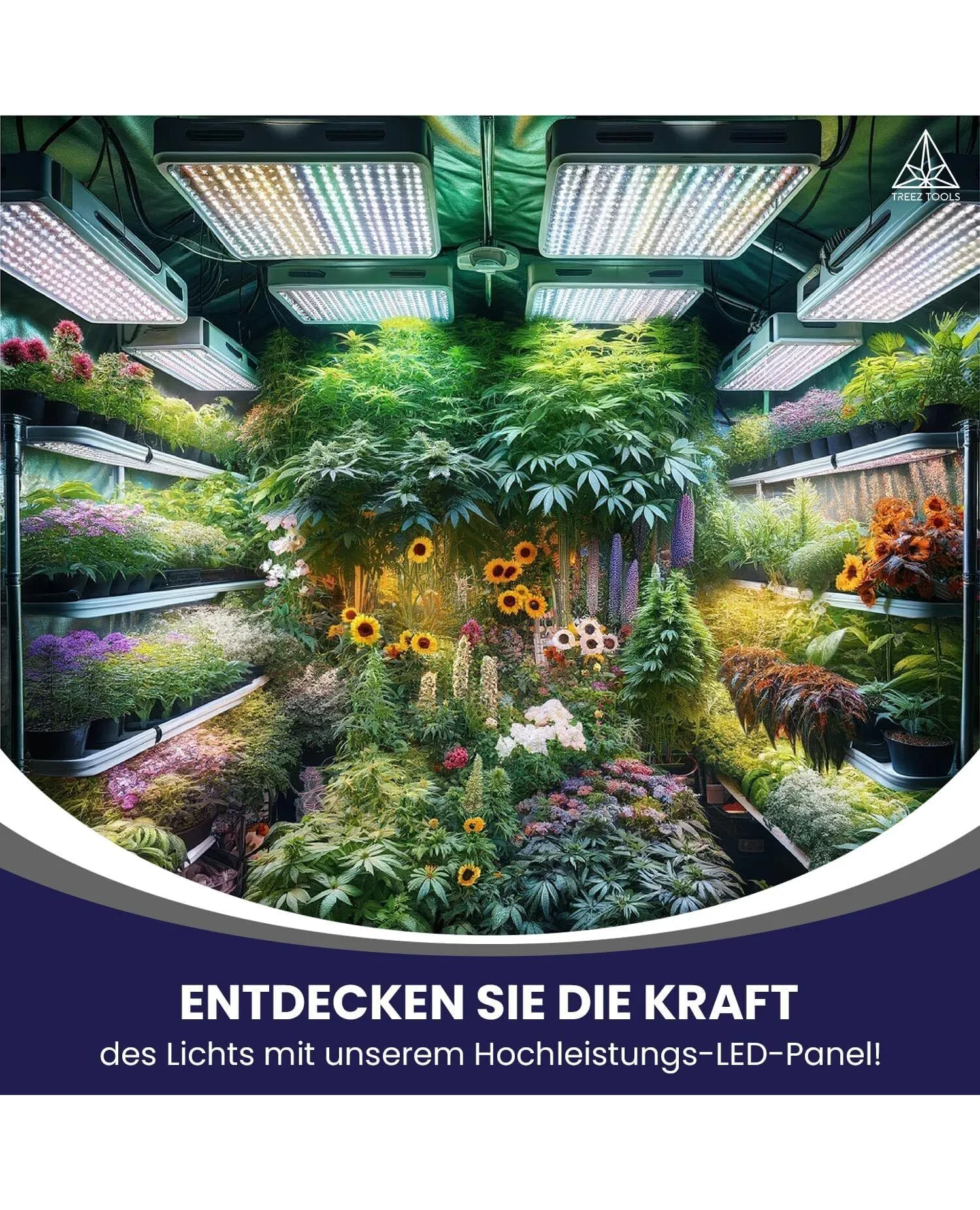 - Merkmale: Die 320W Grow Lampe verwendet fortschrittliche Samsung LM301B und Epistar LED-Chips, die ein breites Vollspektrumlicht bieten, ideal für alle Phasen des Pflanzenwachstums – von der Keimung bis zur Blüte. Die energieeffiziente Technologie sorgt dafür, dass Du weniger Strom verbrauchst, während Deine Pflanzen dennoch das bestmögliche Licht erhalten. Der robuste Aluminiumrahmen gewährleistet eine lange Lebensdauer, und die einfache Installation dank EU-Stecker ermöglicht einen schnellen Start.
