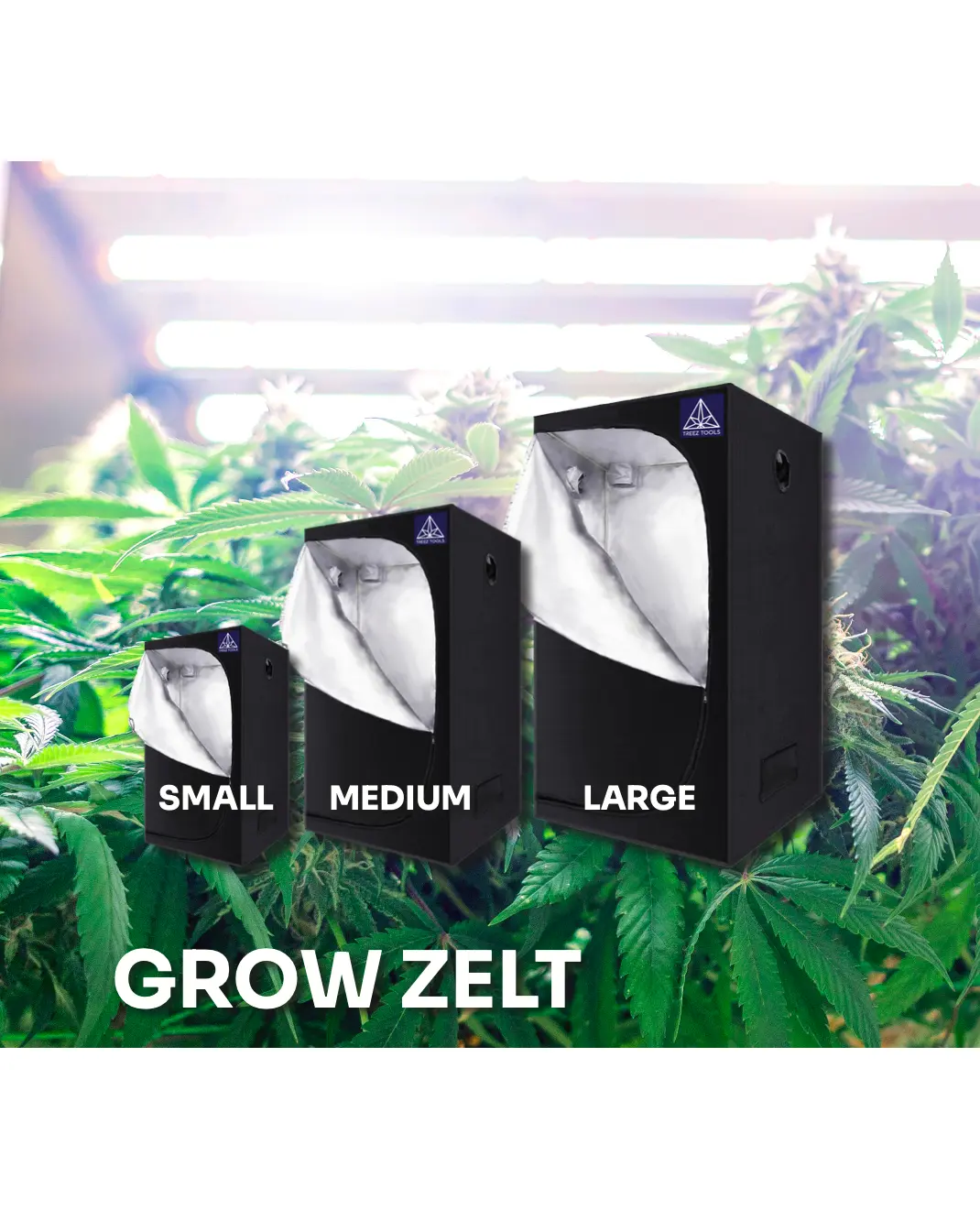 Treez Tools Grow Set S – 320W LED Grow Lampe, Grow Zelt, Belüftungssystem, Ventilator, Bewässerungssystem & 3 Töpfe